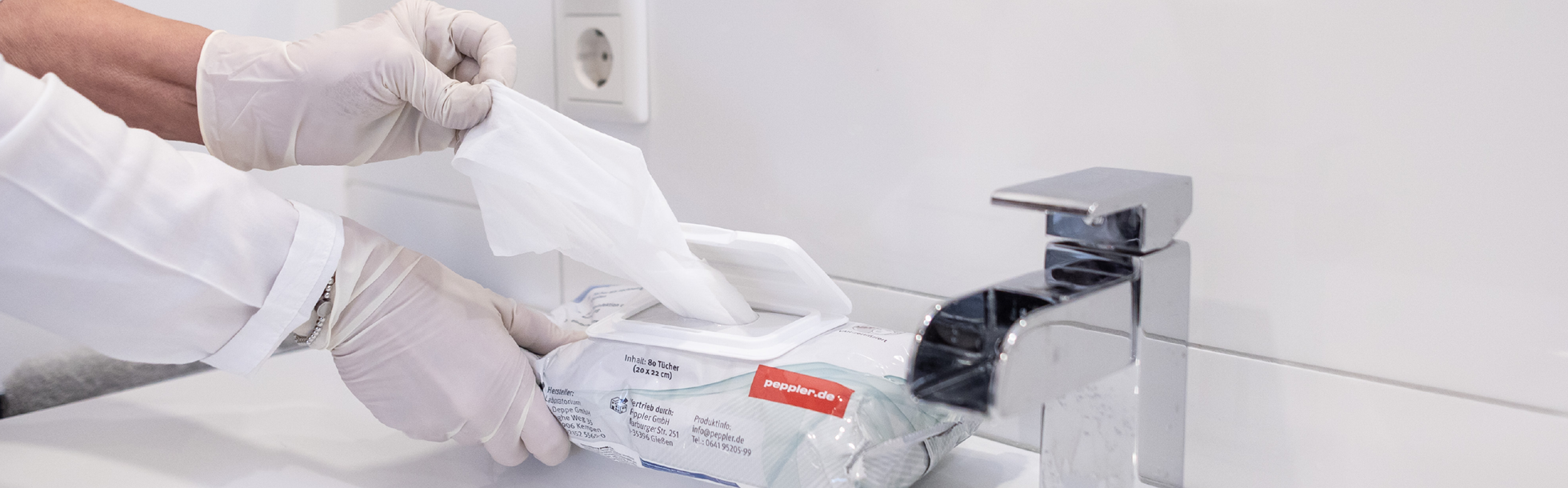 Es empfiehlt sich bei der Anwendung von Flächendesinfektion Handschuhe zu tragen, denn Flächendesinfektionen sollten nicht mit der Haut in Kontakt kommen.